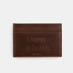 Cards and cash find their place in the ‘Rich’ Cardholder, a sleek essential with a playful soul. Crafted from smooth vegetable-tanned Italian leather, stamped slogans nod to HAVVA’s signature wit and its proudly Made in England craftsmanship.