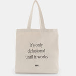 A striking yet simple shopper, embroidered with the words “It’s only delusional until it works,” this tote is a reminder that today’s actions are building the foundations of your dreams. Spacious and versatile, it’s designed to carry you through every moment, from errands and commutes to weekends away and beach days.