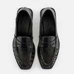 HAVVA brings its refined signature to the timeless penny loafer. Crafted from supple leather, the design features hand-stitched moccasin toes and a subtle XO etched at the back of each heel for a modern finish.