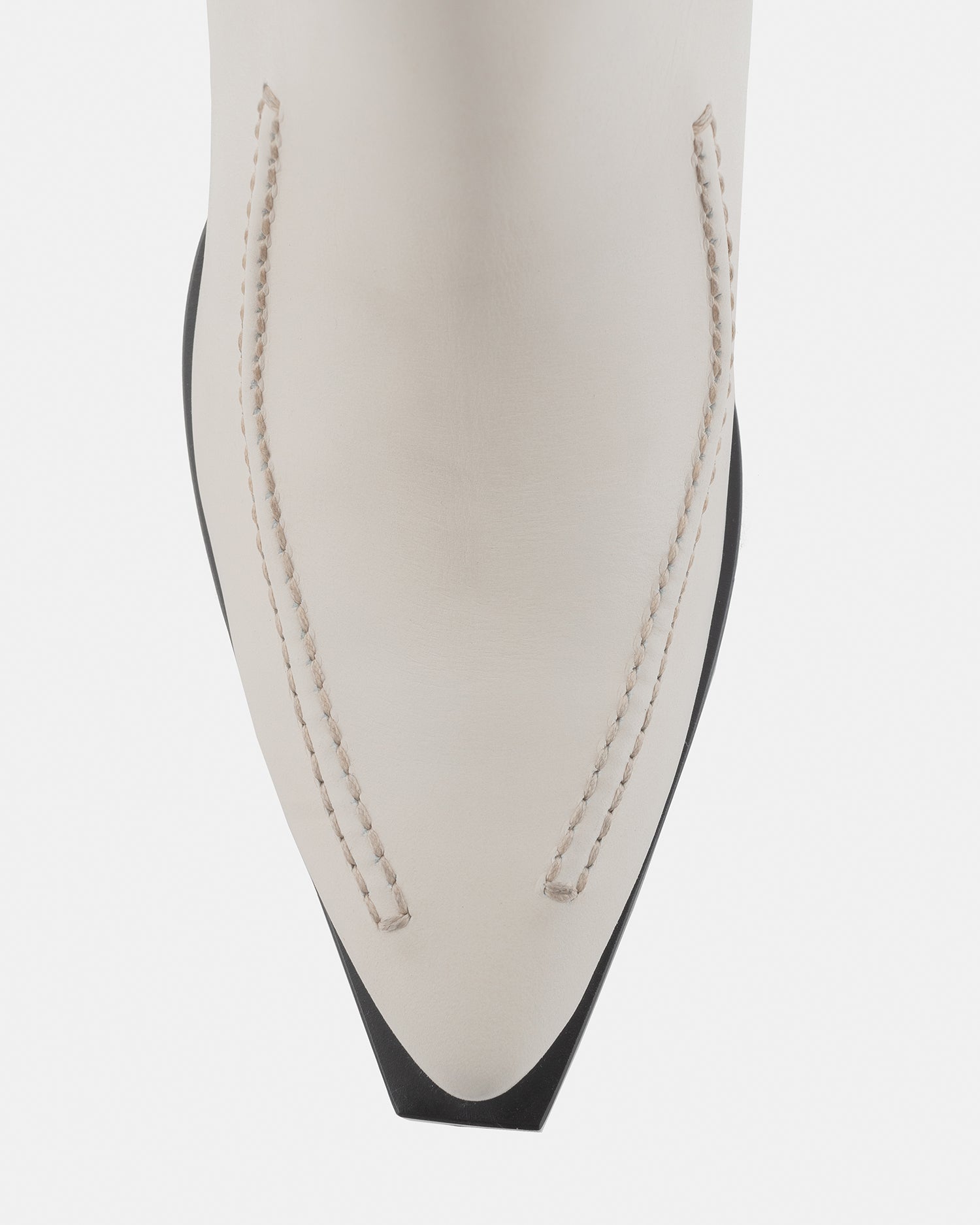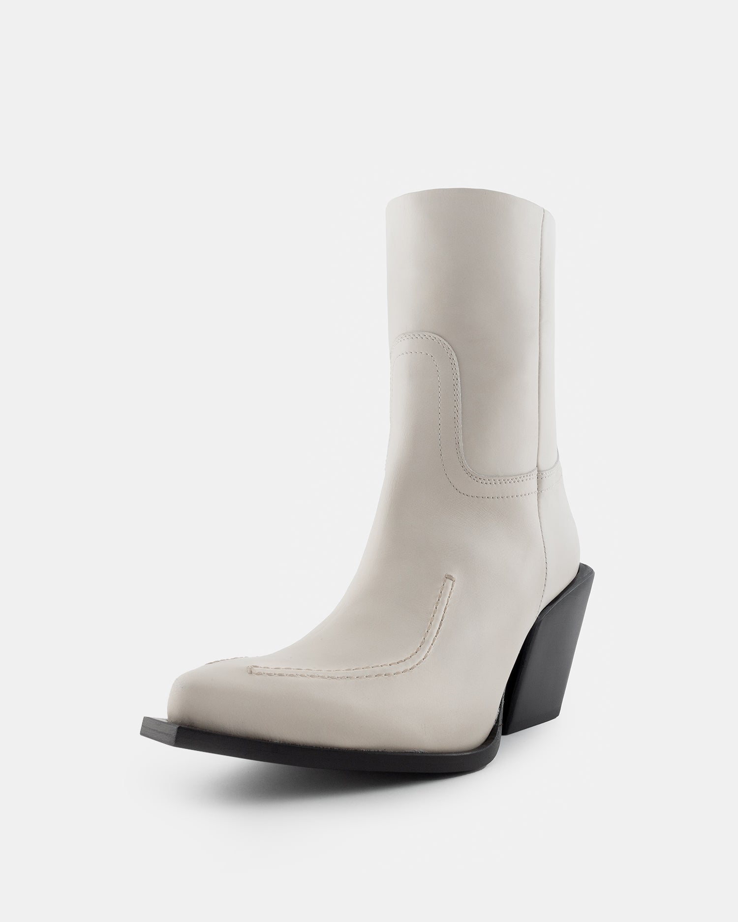 These cream leather boots epitomize timeless elegance through their silhouette, making it a great alternative from a staple black colour way. Wearable with denim, tailored trousers or skirts it makes it a great everyday boot.