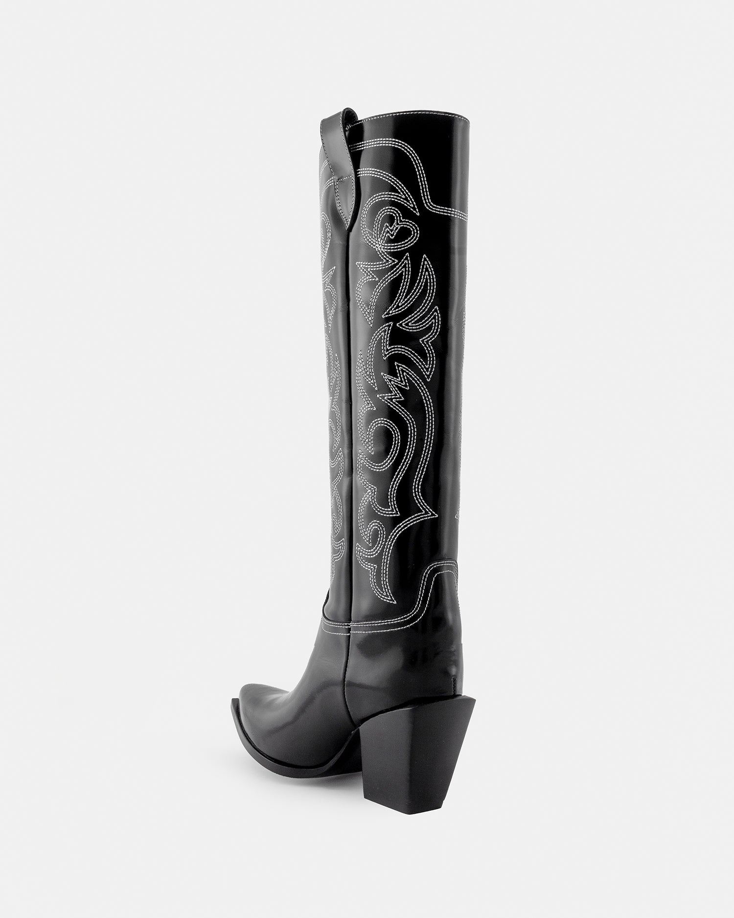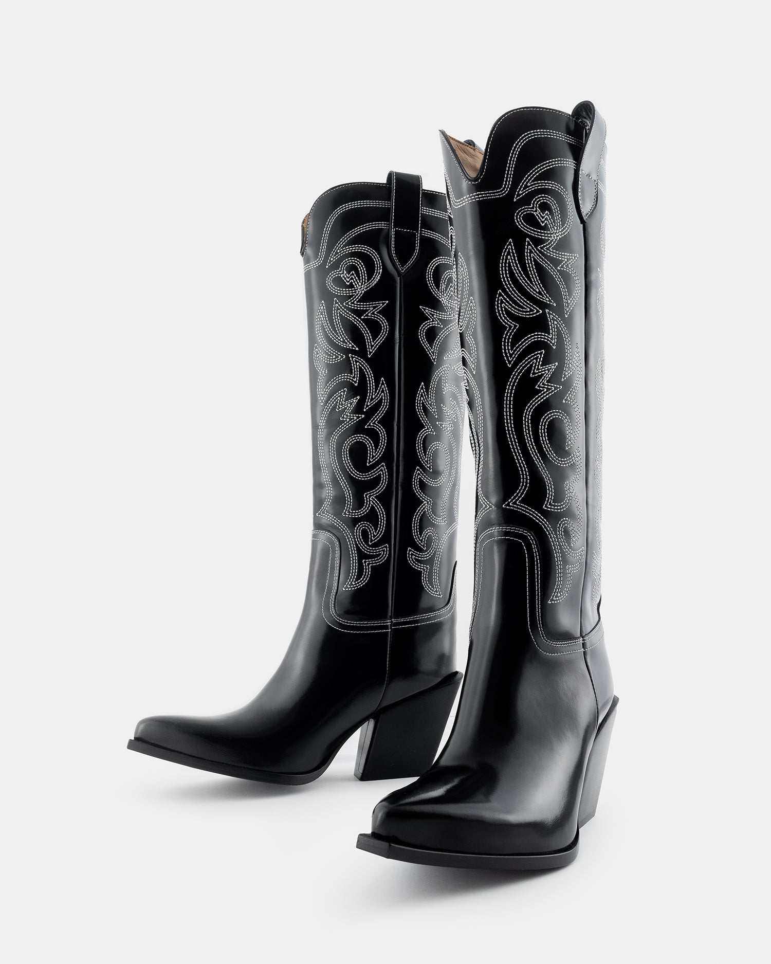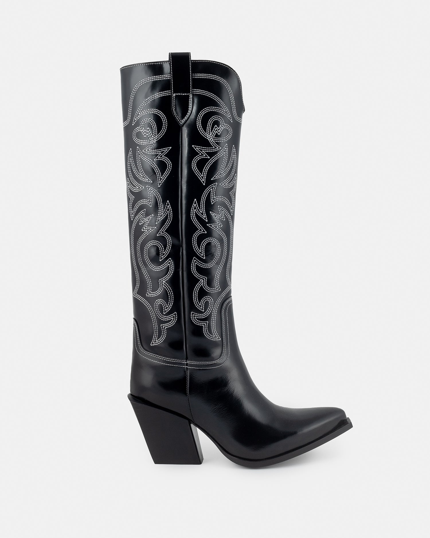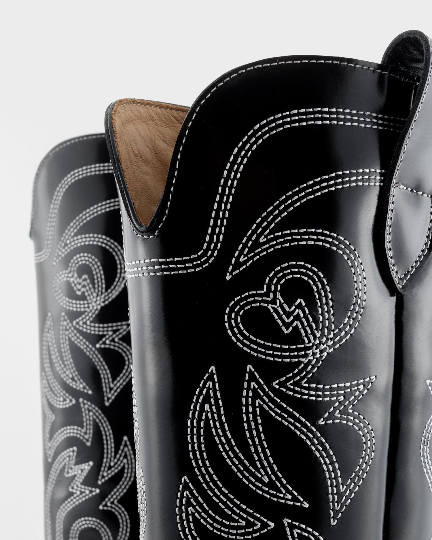 Crafted in homage to Western designs, the front cuff of these boots boasts pull tabs and ornate embroidery, brimming with energy and a unique identity. Boasting a Cuban heel for optimal comfort during extended wear, they are an indispensable addition to any wardrobe. Whether day or night, this sleek combination of traditional and modern design will have heads turning with every step