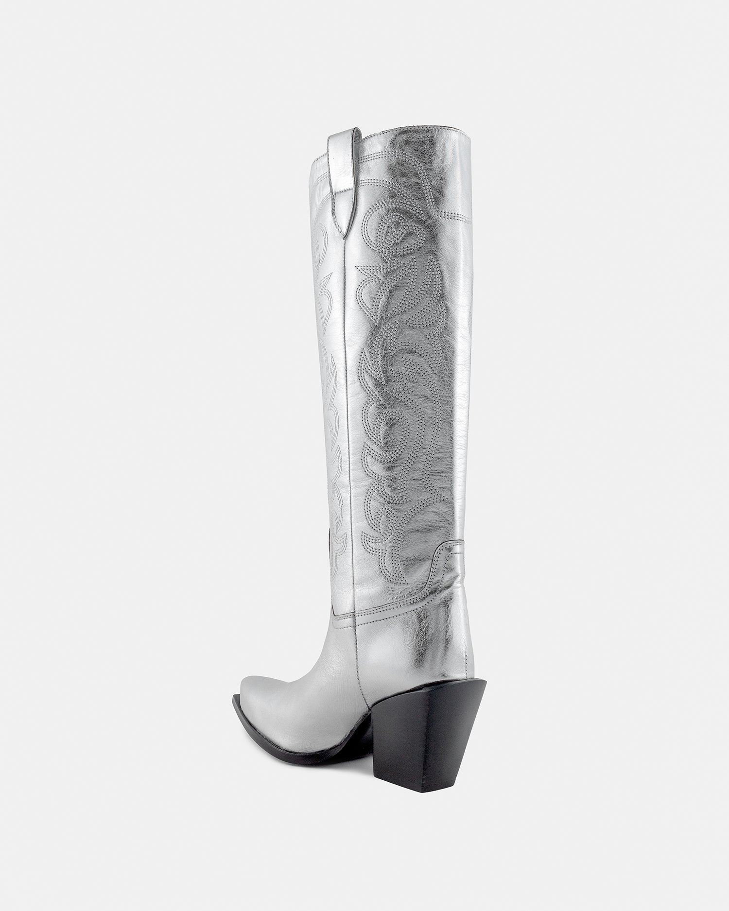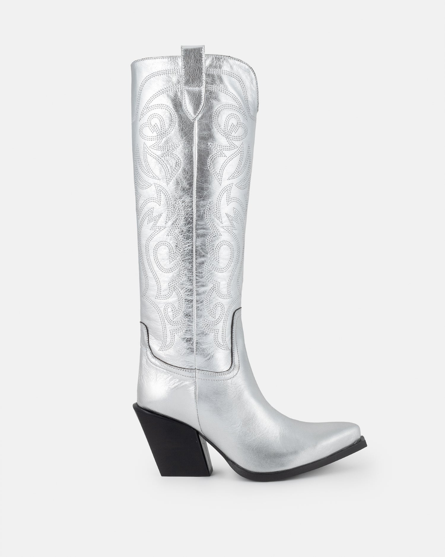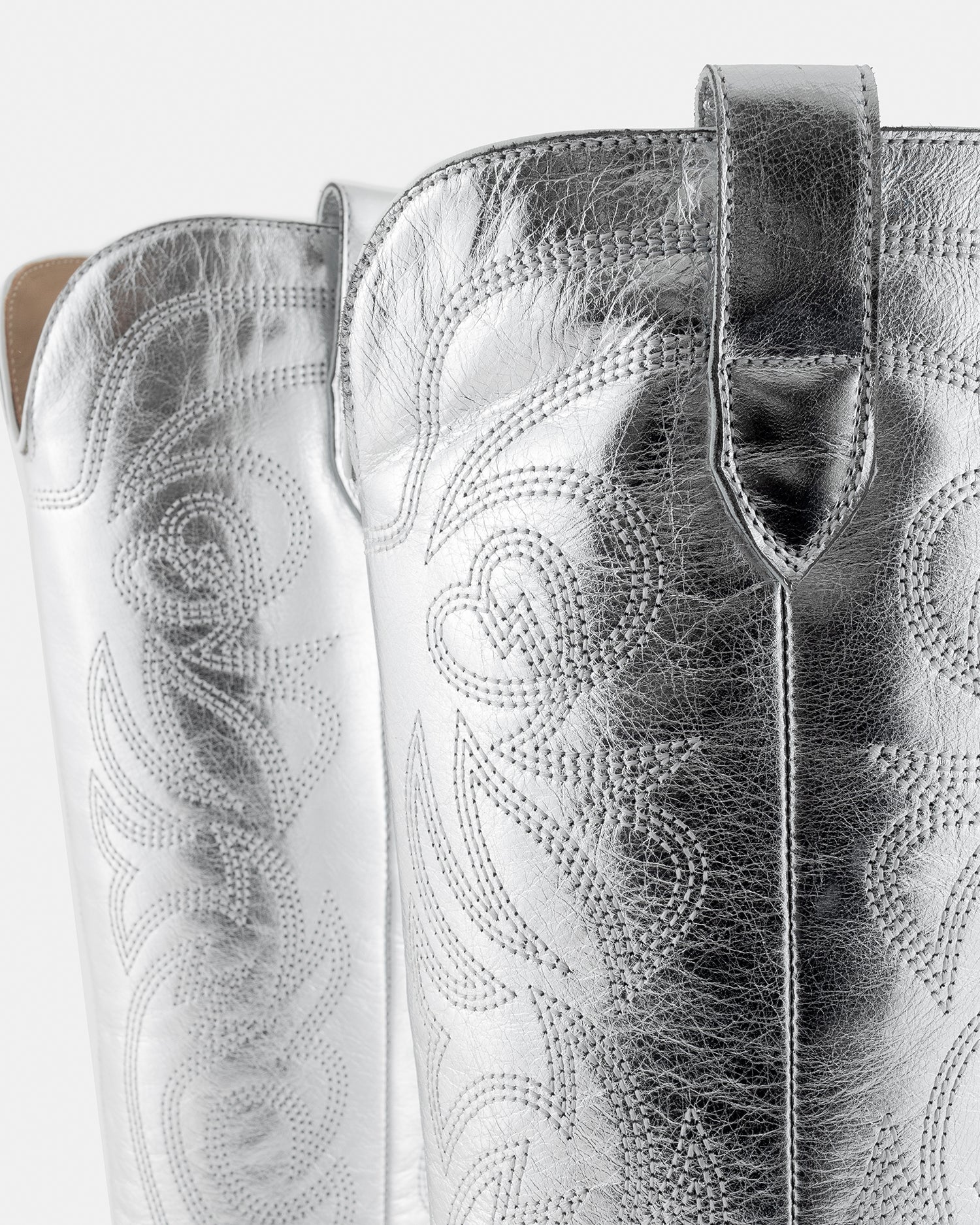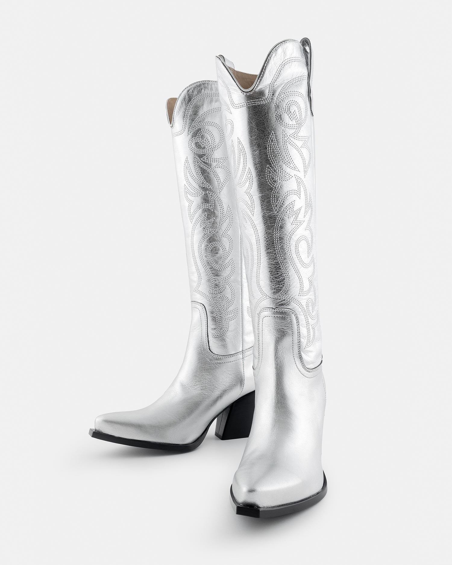 The message is simple – it’s time to dress up, these space silver metallic boots are sure to make a statement wherever you go.