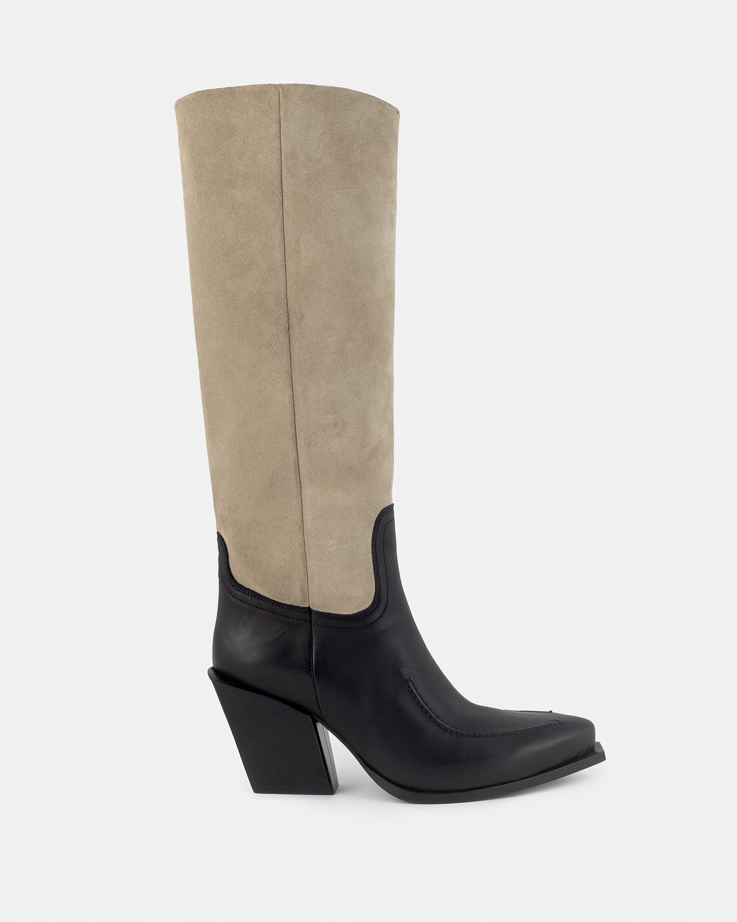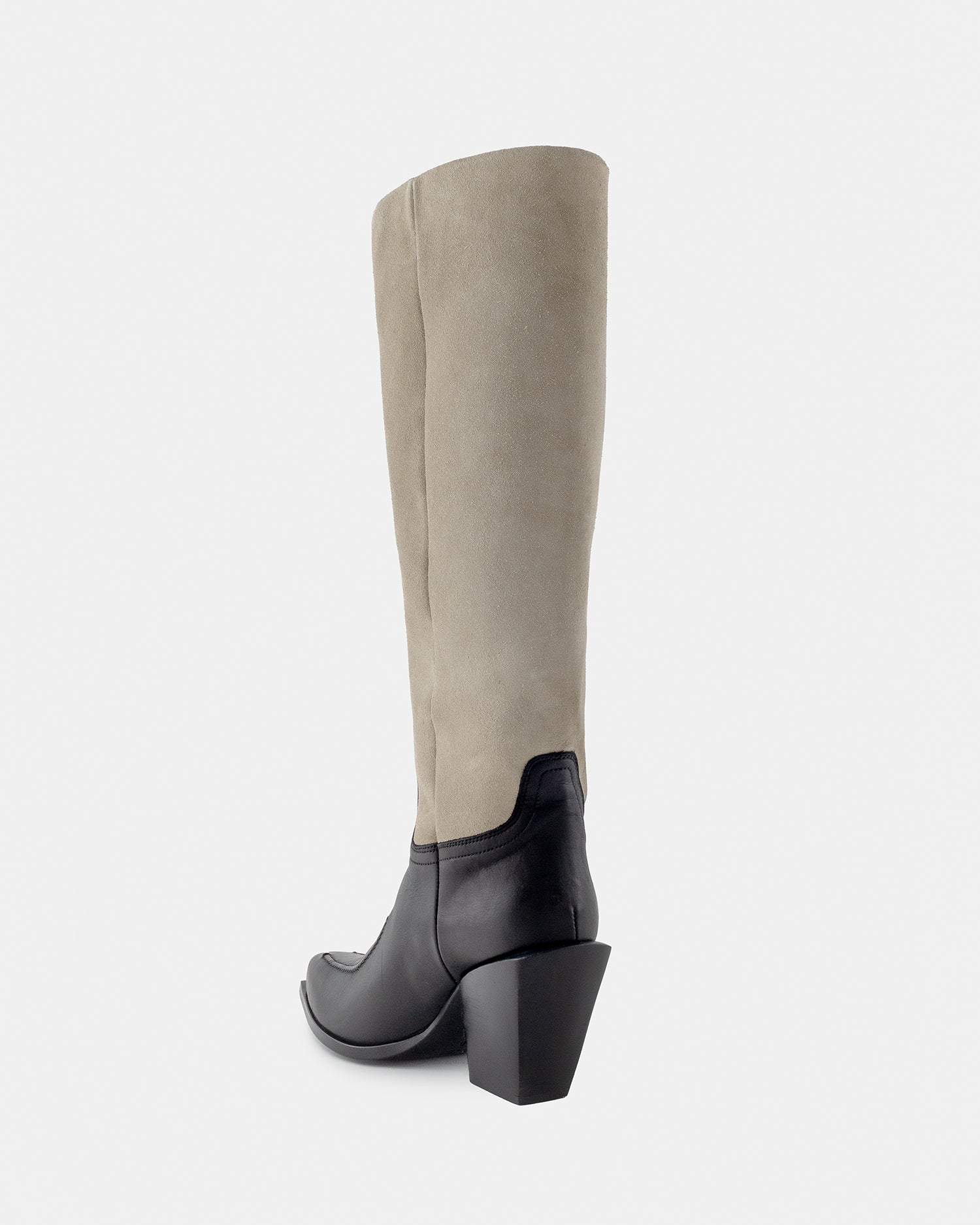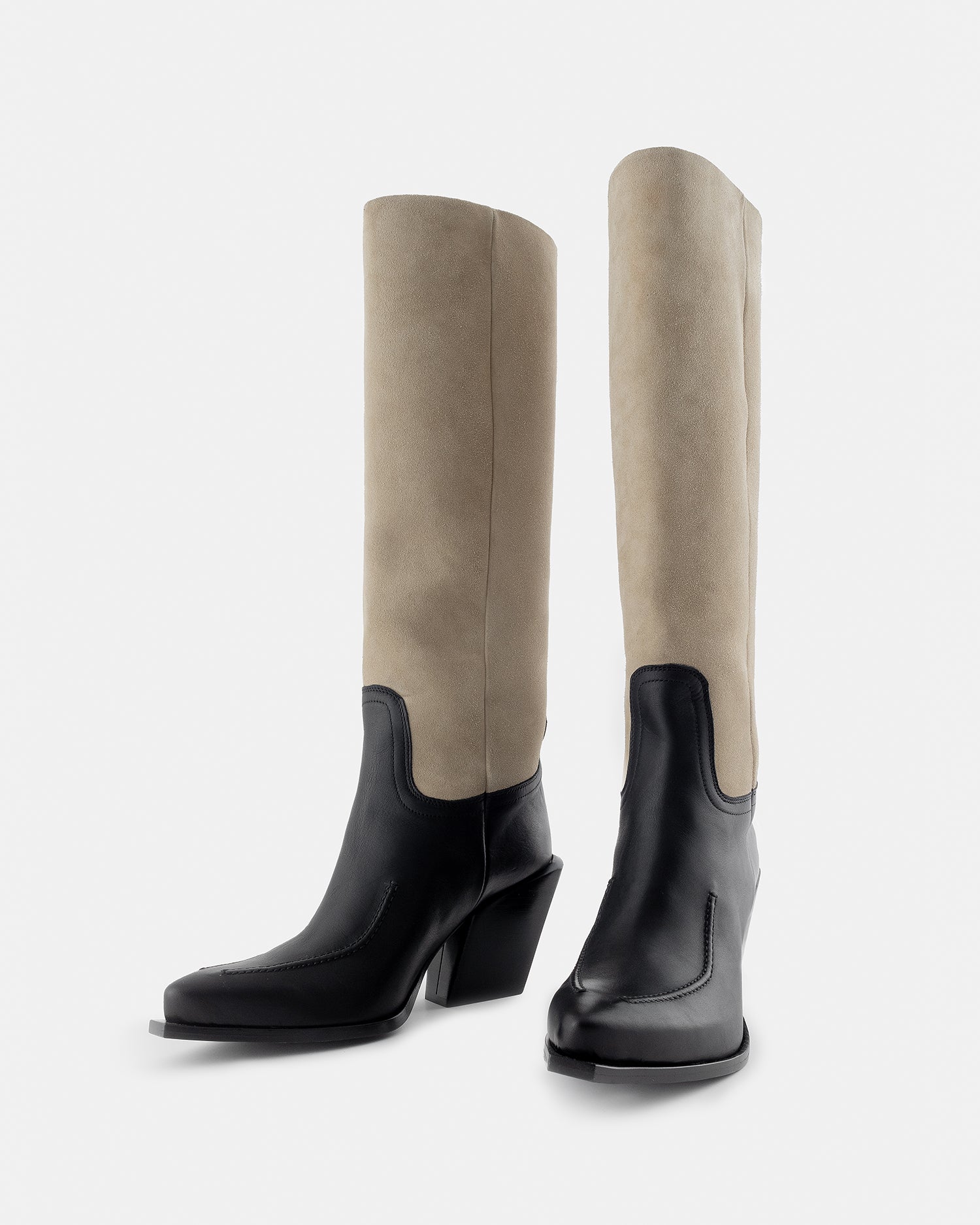 The two part colour segments lends itself to the straight knee high leg is contrasted by the slanted 85m cuban heel offering effortless style without compromising comfort.
