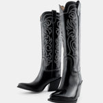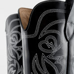 Crafted in homage to Western designs, the front cuff of these boots boasts pull tabs and ornate embroidery, brimming with energy and a unique identity. Boasting a Cuban heel for optimal comfort during extended wear, they are an indispensable addition to any wardrobe. Whether day or night, this sleek combination of traditional and modern design will have heads turning with every step